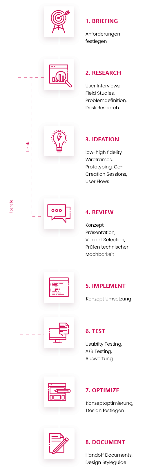 User flows in form of low-fidelity wirefelows helped me to quickly uncover and optimise issues, as well as efficiently communicate opportunities. They also ensured that the focus of UX discussions was where it should be: on user experience rather than UI design.