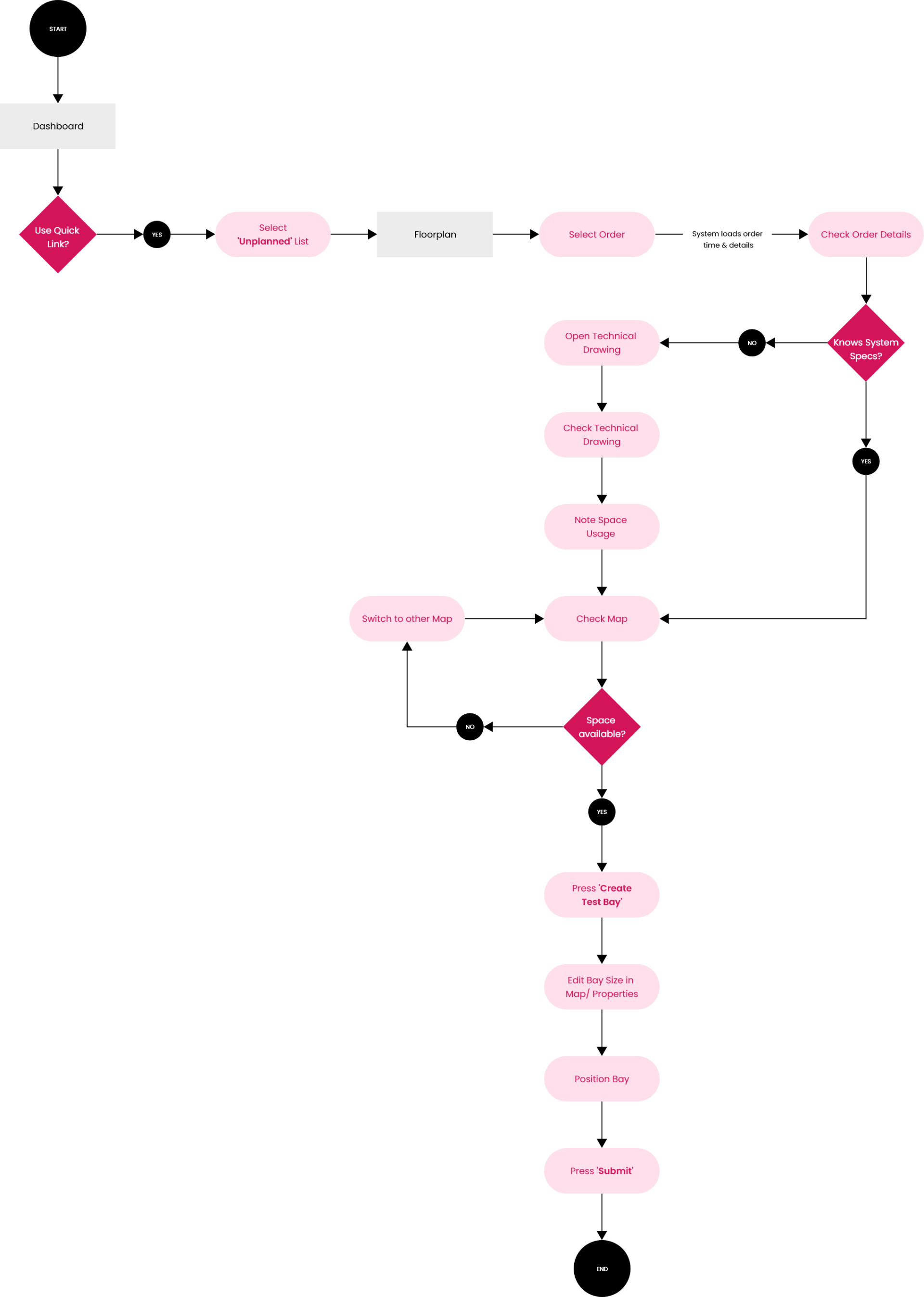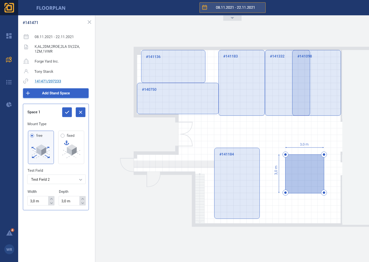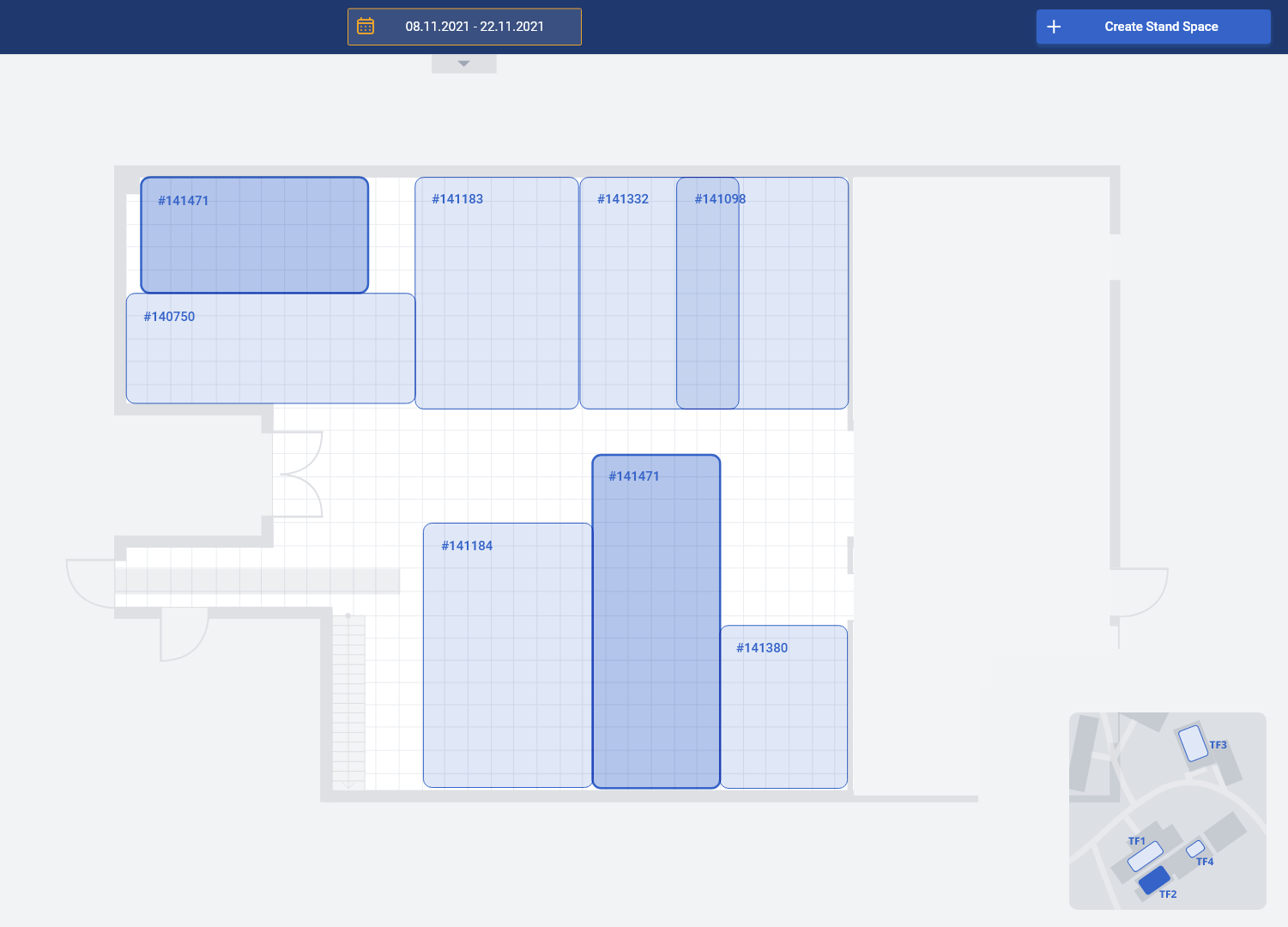 I worked out user flows to ensure that the task flow is as easy to use as possible for the user and aimed to keep it compact. Now, the planner can carry out his core activity, the planning of stand spaces, with just 7 clicks.