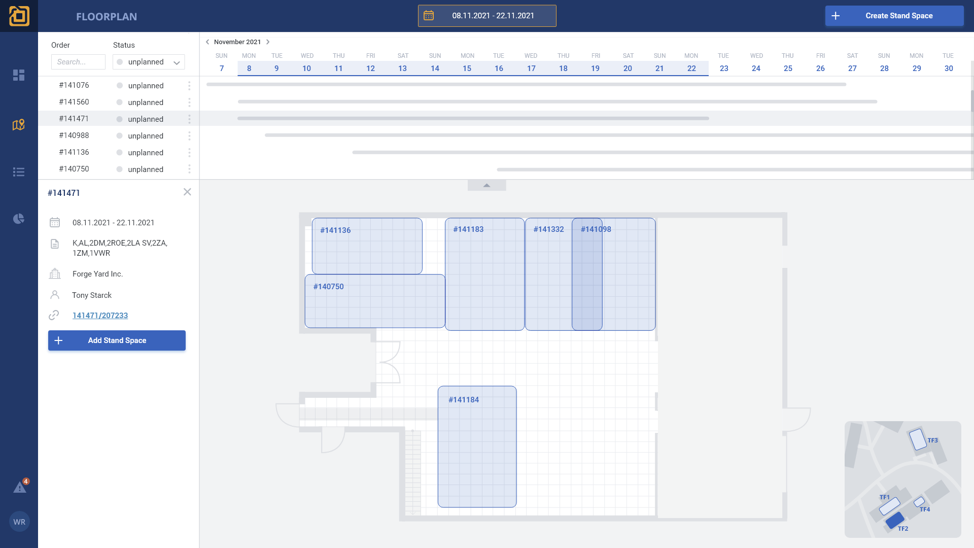 I worked out user flows to ensure that the task flow is as easy to use as possible for the user and aimed to keep it compact. Now, the planner can carry out his core activity, the planning of stand spaces, with just 7 clicks.